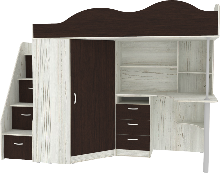 Кровать чердак Пионер включает в себя: Компьютерный стол с множеством стеллажей Тумба с ящиками для письменных принадлежностей Небольшой, но глубокий шкафчик для одежды и обуви, стоящий под углом оснащён перекладиной для вешалок и полочками Просторная лестница представляет собой три системы хранения для всевозможных вещей в виде широких ступенек Бортик среднего размера, сделанный в форме волн, защитит ребёнка от случайных падений Качественные материалы и удачная комбинация цвета фасадов и основной конструкции, обеспечат безопасность, долговечность и сохранят привлекательный внешний вид. Сборка универсальная. Матрасы в стоимость не входят. - Хотите заказать сборку нашими специалистами? Отлично, мы соберем вам кровать одновременно с доставкой! - Хотите собрать кроватку сами? Нет ничего проще, просто вооружитесь инструкцией и посмотрите наше видео! Ваш ребенок по достоинству оценит комфорт, который несет вам кровать-чердак с рабочей зоной Пионер. Кровать чердак Пионер - это удобная и компактная мини детская комната для Вашего ребенка со спальным местом наверху и рабочей зоной внизу. Матрас для кровати вы можете приобрести отдельно в разделе детских матрасов. Так же мы предлагаем ниже в разделе Аксессуары наиболее оптимальные варианты для данной кровати. Предприятие-изготовитель оставляет за собой право вносить изменения в конструкцию изделия с целью улучшения технологических и экспуатационных свойств мебели. Ограничение по нагрузке на лестницу до 60 кг. Цвет кромки на цветных фасадах - бежевый.