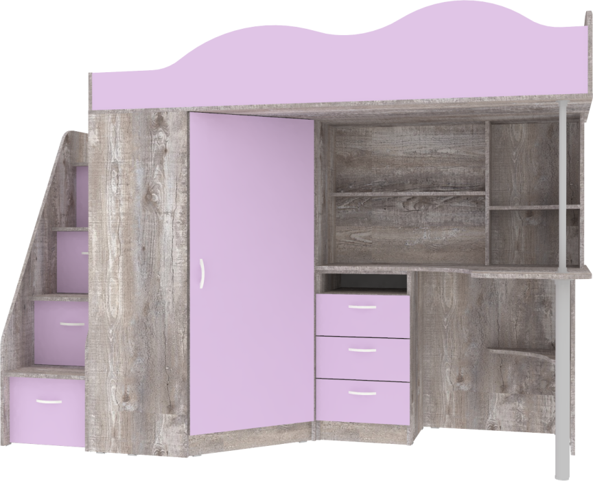 Кровать чердак Пионер включает в себя: Компьютерный стол с множеством стеллажей Тумба с ящиками для письменных принадлежностей Небольшой, но глубокий шкафчик для одежды и обуви, стоящий под углом оснащён перекладиной для вешалок и полочками Просторная лестница представляет собой три системы хранения для всевозможных вещей в виде широких ступенек Бортик среднего размера, сделанный в форме волн, защитит ребёнка от случайных падений Качественные материалы и удачная комбинация цвета фасадов и основной конструкции, обеспечат безопасность, долговечность и сохранят привлекательный внешний вид. Сборка универсальная. Матрасы в стоимость не входят. - Хотите заказать сборку нашими специалистами? Отлично, мы соберем вам кровать одновременно с доставкой! - Хотите собрать кроватку сами? Нет ничего проще, просто вооружитесь инструкцией и посмотрите наше видео! Ваш ребенок по достоинству оценит комфорт, который несет вам кровать-чердак с рабочей зоной Пионер. Кровать чердак Пионер - это удобная и компактная мини детская комната для Вашего ребенка со спальным местом наверху и рабочей зоной внизу. Матрас для кровати вы можете приобрести отдельно в разделе детских матрасов. Так же мы предлагаем ниже в разделе Аксессуары наиболее оптимальные варианты для данной кровати. Предприятие-изготовитель оставляет за собой право вносить изменения в конструкцию изделия с целью улучшения технологических и экспуатационных свойств мебели. Ограничение по нагрузке на лестницу до 60 кг. Цвет кромки на цветных фасадах - бежевый.