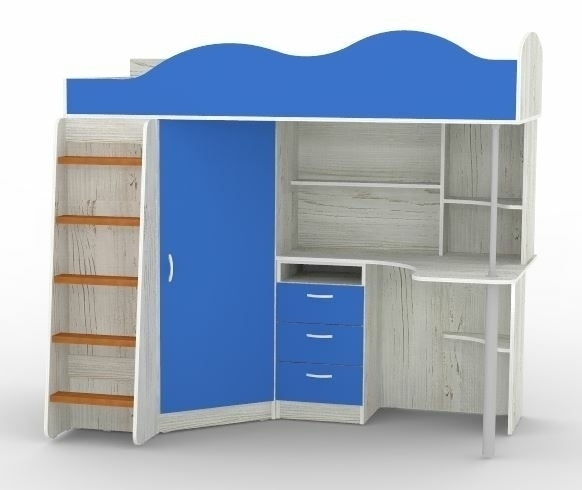 Отзывы о Столплит Кровать чердак Пионер с деревянной лестницей, Винтерберг Синий