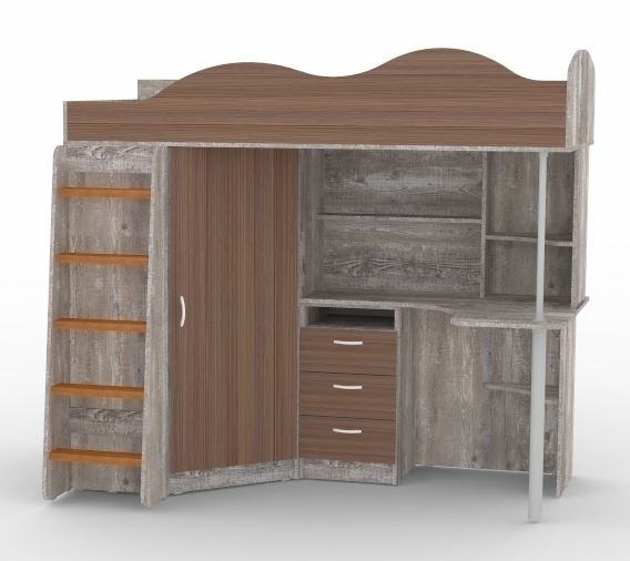 Отзывы о Столплит Кровать чердак Пионер с деревянной лестницей, Бетон Бодега темная