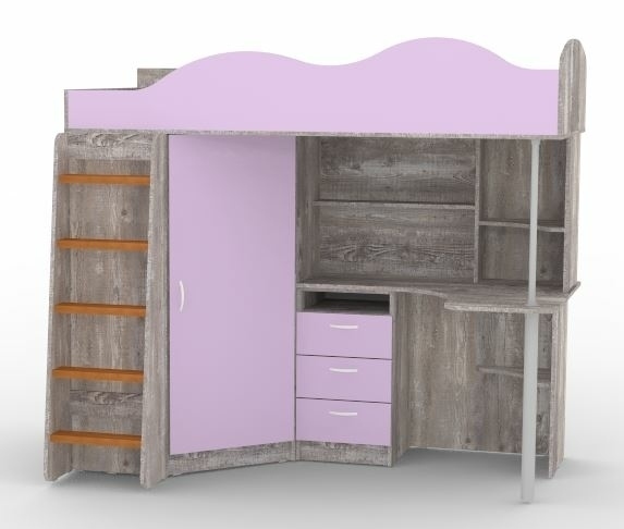 Отзывы о Столплит Кровать чердак Пионер с деревянной лестницей, Бетон Ирис