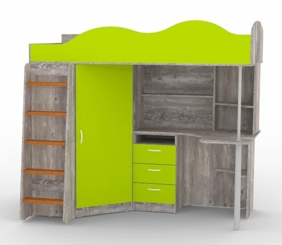 Отзывы о Столплит Кровать чердак Пионер с деревянной лестницей, Бетон Лайм