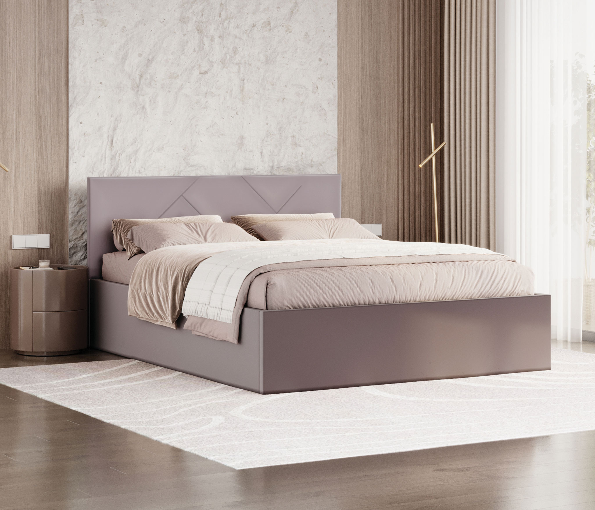 Кровать ЛИМА несет в себе эргономичность и минимализм, тем самым обеспечивает максимальный комфорт для сна. Все угловые элементы скрыты мягкой обивкой – это несомненный плюс. Благородные цвета исполнения кровати ЛИМА позволят вписаться в любой интерьер. Подъемный механизм кровати Лима – это дополнительное место для хранения.