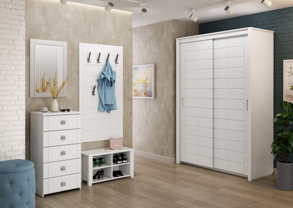 Комплект данного гарнитура:Шкаф-купе Изабель ИЗ-60К белое дерево / 1 шт.Зеркало Изабель ИЗ-90 белое дерево / 1 шт.Комод Изабель ИЗ-51К белое дерево / 1шт.Вешалка Изабель ИЗ-80 белое дерево / 1 шт.Тумба Изабель ИЗ-43К белое дерево / 1 шт.Цвет корпуса/фасада: белый структурный/белое дерево.Материал корпуса/фасада: ЛДСП/МДФ.