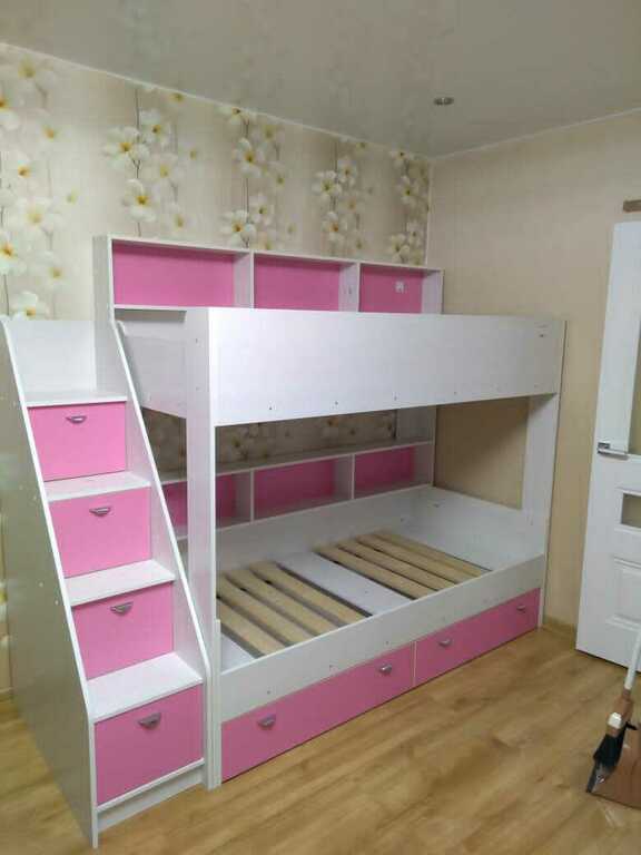 Отлично продуманная модель. Спальные места удобные и место для игрушек порадовало особенно. Быстро доставили и собрали- детям очень понравилась кровать. Цвета можно выбрать и девочкам и мальчикам.