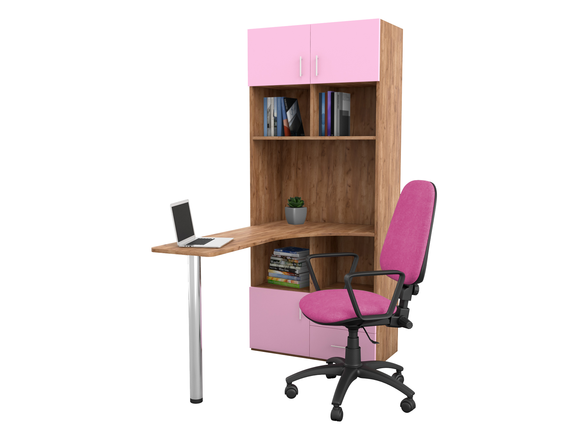 Письменный стол-стеллаж, дуб крафт табачный (Розовый)