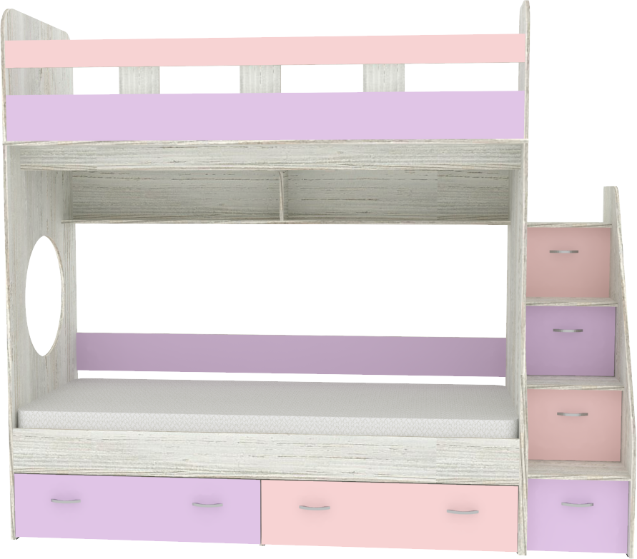 Двухъярусная кровать Юниор 1 90x200, Винтерберг (Розовый/Ирис)