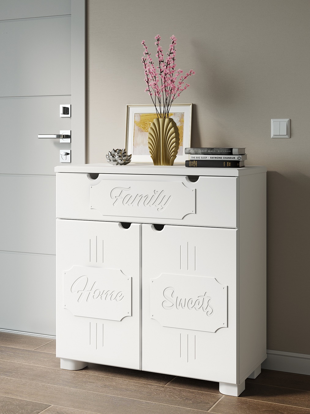 Система мебели "Дримстар" включает в себя отдельные самостоятельные модули, сочетающие в себе функциональность и уникальность дизайна. С базовым набором модулей легко оформить интерьер любого помещения. Все модули можно комбинировать между собой. Фасады украшены надписями, которые придают моделям оригинальный вид. Коллекция "Дримстар" поможет вам в оформлении стильного и современного интерьера. Столешница изготовлена из МДФ толщиной 25 мм. В ящиках используются телескопические направляющие полного выдвижения, петли с доводчиками.