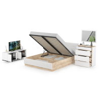 В этот комплект входит двуспальная кровать Муссон 11.28, ТВ тумба и Комод 13.97 с зеркалом. Выбирая двуспальную кровать Муссон, Вы выбираете крепкий сон и уют. Объёмная прямоугольная стежка на изголовье и изножье, украшенная рядом пуговиц, добавляют кровати Муссон визуальной гармонии. Обивка выполнена из модной, удобной в эксплуатации искусственной кожи. Мягкими элементами являются изножье и изголовье. Корпус кровати оборудован подъемным ортопедическим основанием, которое обеспечивает доступ к трем коробам для белья. Спальное место размером 1600х2000 мм. Матрас для этой кровати преобретается отдельно. Большое навестное зеркало в раме можно размещать как горизонтально, так и вертикально. Компактный Ком с четырьмя вместительными выдвижными ящиками на шариковых направляющих полного выдвижения. У фасадов нет фурнитуры, она заменена стильными ручками-вырезами. Вырезы делают внешний вид изделий асимметричным, что делает композицию современной и динамичной. Современная тумба под ТВ придётся по вкусу любителям чёрно-белых акцентов в оформлении интерьера. Особый акцент данной модели - наличие металлических деталей, опор из окрашенного металла и декоративные элементы на фасадной части тумбы из анодированного алюминия. Визуально плита ДСП имеет глубокое тиснение шагрень, а белый цвет фасадов удачно подчёркивает его. Конструктивно тумба разделена на два отделения, каждое - за парой распашных дверей с одной полочкой внутри. Ширина дверей одинакова. Закреплены дверки на четырёхшарнирных петлях. Верхний горизонт оборудован вырезом для размещения проводов мультимедиа аппаратуры. Опоры регулируются по высоте, что позволяет компенсировать неровность пола, и наделены пластиковыми подпятниками, что сохранит Ваше напольное покрытие от повреждений. Мебель выполнена из прочной ламинированной ДСП 16 и 22 мм, торцы деталей закромлены плёнкой ПВХ 0,4-2 мм. Поставляется в разобранном виде, надёжно упакованной в гофрокартон, с приложенной подробной инструкцией по сборке. Муссон Кровать 1600 с подъёмным механизмом с тумбой TV 13.276 и зеркалом СВК - элементы из набора мебели для спальни Муссон.