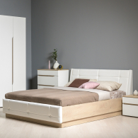 В этот комплект входит двуспальная кровать Муссон 11.28 и комод Муссон 13.97. Выбирая двуспальную кровать Муссон, Вы выбираете крепкий сон и уют. Объёмная прямоугольная стежка на изголовье и изножье, украшенная рядом пуговиц, добавляют кровати Муссон визуальной гармонии. Обивка выполнена из модной, удобной в эксплуатации искусственной кожи. Мягкими элементами являются изножье и изголовье. Корпус кровати оборудован подъемным ортопедическим основанием, которое обеспечивает доступ к трем коробам для белья. Спальное место размером 1600х2000 мм. Матрас для этой кровати преобретается отдельно. Компактный комод с четырьмя вместительными выдвижными ящиками на шариковых направляющих полного выдвижения. У фасадов нет фурнитуры, она заменена стильными ручками-вырезами. Вырезы делают внешний вид изделий асимметричным, что делает композицию современной и динамичной. Установлена мебель на пластиковые подпятники, защищая поверхность пола от механических повреждений. Мебель выполнена из прочной ламинированной ДСП 16 мм, торцы деталей закромлены плёнкой ПВХ 0,4-2 мм. Поставляется в разобранном виде, надёжно упакованной в гофрокартон, с приложенной подробной инструкцией по сборке. Ком Муссон с кроватью 1600 с подъёмным основанием - элементы из набора мебели для спальни Муссон.
