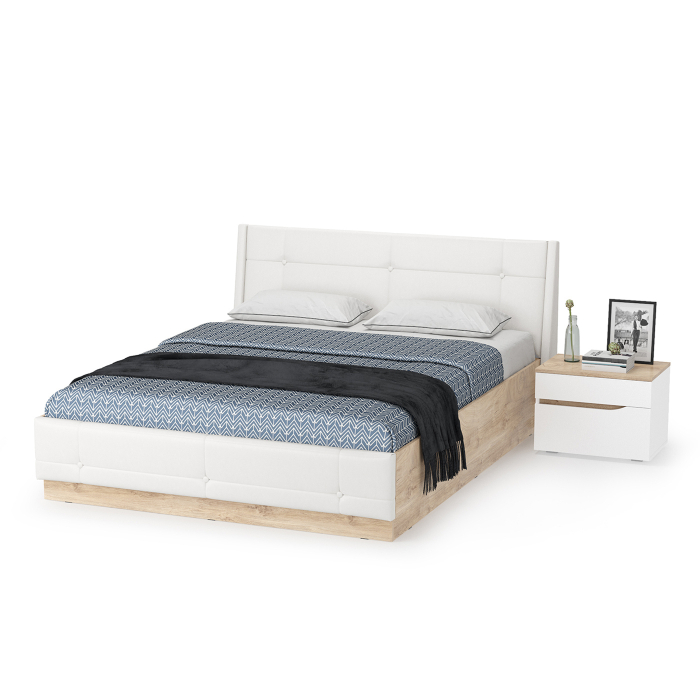 Отзывы о Столплит Кровать Муссон с подъёмным основанием и тумбой белый/дуб эндгрейн/иск.кожа белая