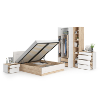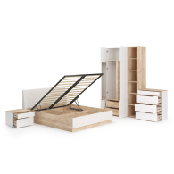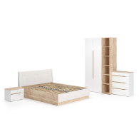 В этот комплект входит 5 предметов мебели - двуспальная кровать Муссон 11.28, прикроватная тумба, шкаф двухстворчатый 13.198 со стеллажом 13.349 и комодом. Выбирая двуспальную кровать Муссон, Вы выбираете крепкий сон и уют. Объёмная прямоугольная стежка на изголовье и изножье, украшенная рядом пуговиц, добавляют кровати Муссон визуальной гармонии. Изголовье кровати установлено с небольшим наклоном, что позволит в комфортной позе читать или сидеть на кровати. Обивка кровати выполнена из модной, удобной в эксплуатации искусственной кожи. Мягкими элементами у кровати являются изножье и изголовье. Комбинация сочетания цвета кровати с нежными светлыми акцентами обивки придают мебели выразительную элегантность. Корпус кровати оборудован подъемным ортопедическим основанием, которое обеспечивает доступ к трем коробам для белья. Спальное место размером 1600х2000 мм. Матрас для этой кровати преобретается отдельно. Тумбочка прикроватная оборудована двумя удобными выдвижными ящиками на шариковых направляющих полного выдвижения. Установлена тумба прикроватная Муссон 16.03 на пластиковые опоры защищая поверхность пола от механических повреждений. Не универсальная сборка - собирается только так, как представлено на изображениях. За распашными дверками шкафа оборудованы три отделения - нижнее с ящиками, верхнее с антресольной полкой и центральное со штангой для одежды на вешалках и полками. Два вместительных внутренних ящика на шариковых направляющих послужат отличным комодиком для деликатных вещей и белья. Центральное отделение со штангой для одежды на вешалках и полками может быть собрано на любую сторону. На обратной стороне двери размещается зеркало. Стеллаж оборудован пятью поками для хранения вещей и элементов декора. Компактный комод с четырьмя вместительными выдвижными ящиками на шариковых направляющих полного выдвижения. Лицевую фурнитуру заменяет стильный вырез, за которым видно древесный декор корпуса. Вырезы делают внешний вид изделий асимметричным, что делает композицию современной и динамичной. Мебель выполнена из прочной ламинированной ДСП 16 мм, торцы деталей закромлены плёнкой ПВХ 0,4-2 мм. Поставляется в разобранном виде, надёжно упакованной в гофрокартон, с приложенной подробной инструкцией по сборке.