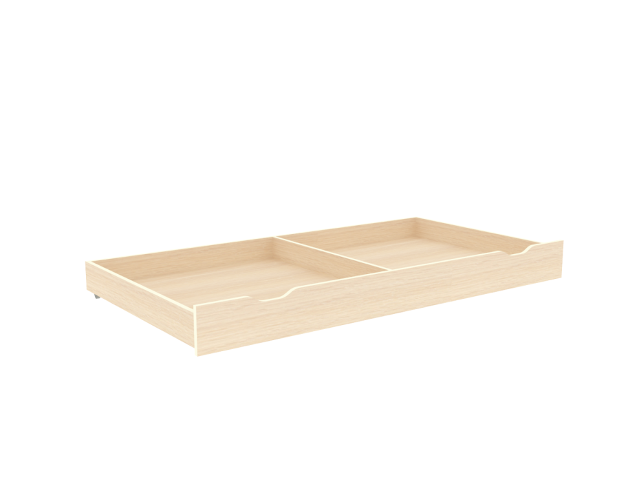 Выкатной ящик для детской кровати Домик Сказка ДС-2. Оснащен колесами. К основанию кровати не крепится. Выдвигается за счет двух выемок.