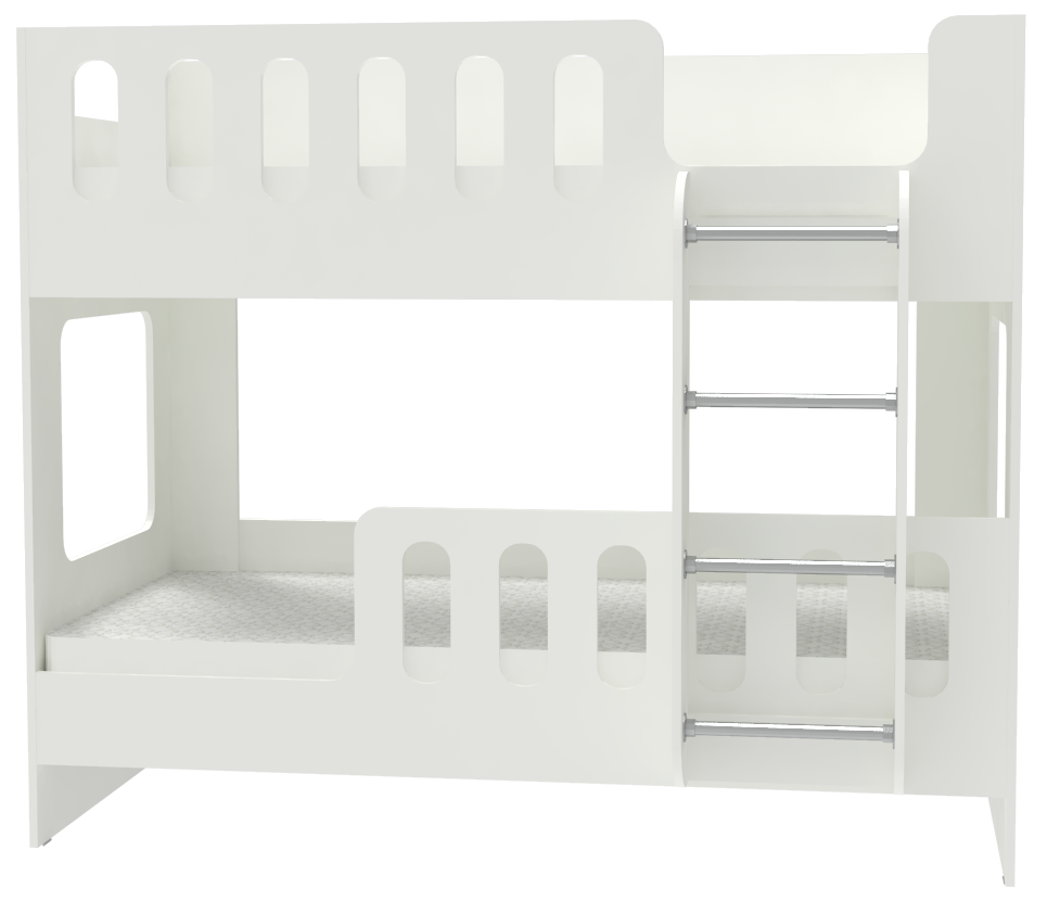 Кровать для двоих детей Сказка имеет два яруса, что позволяет сэкономить пространство: верхнее спальное место расположено над нижним. На нижнем ярусе предусмотрены окошки, а на верхнем - высокий бортик для безопасного сна (39 см. от основания матраца). На цветных фасадах: цвет кромки - Бежевый. В комплекте с кроватью идет вертикальная лестница, которая крепится к передним бортам. Отдельно можно приобрести Лестницу-комод ДС-18. Этот дополнительный элемент не только позволяет безопасно подниматься на верхний ярус, но также является небольшой системой для хранения, ведь в каждой ступени находится выдвижной ящик. Также дополнить кровать можно Ограничитель ДС-07 (фабрика изменила конструкцию бортика и отличается от фото) , Выдвижным ящиком ДС-2 и Горкой ДС-19.