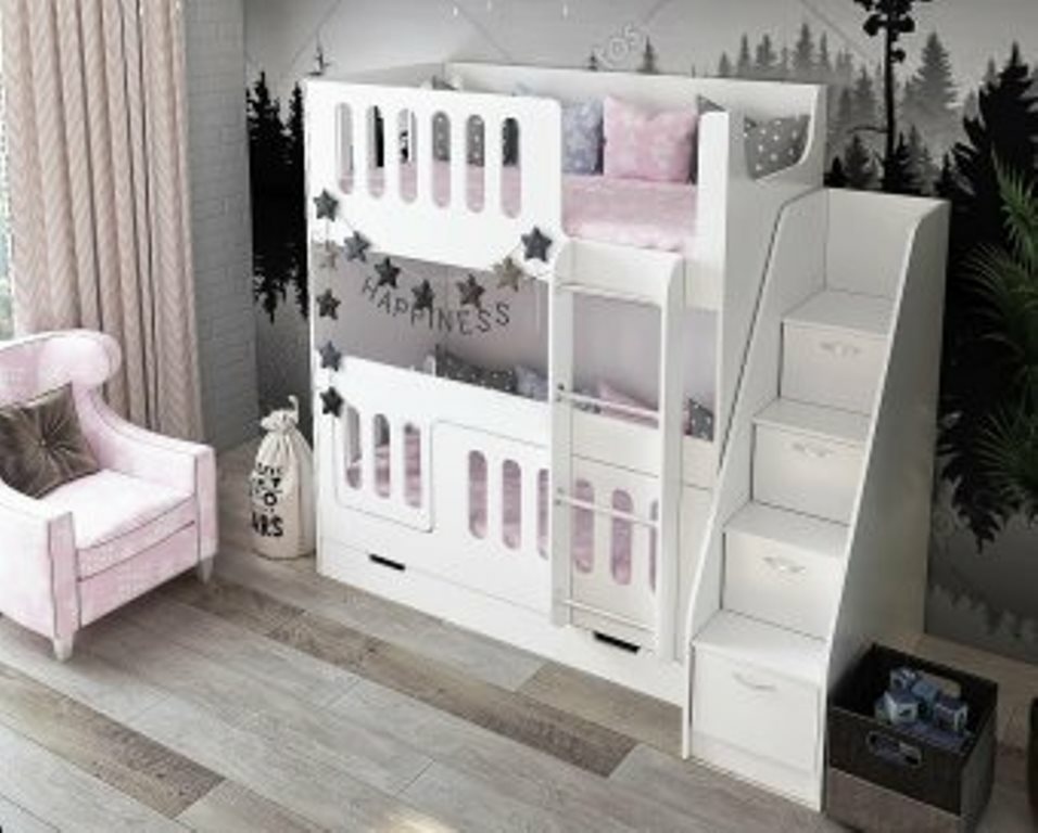 Кровать - отличный вариант для двоих детей. Для младшей - нижний ярус, дополнительный борт делает кровать безопасной. Общий вид красивый и эстетичный. В дизайн детской подошла идеально. Доставили быстро, собрали в тот же день.
