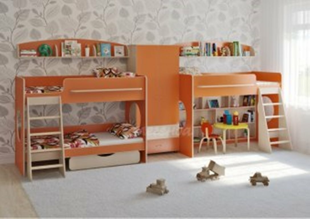 Отзывы о Столплит Трехъярусная кровать Легенда 25.4 Дуб молочный Оранжевый