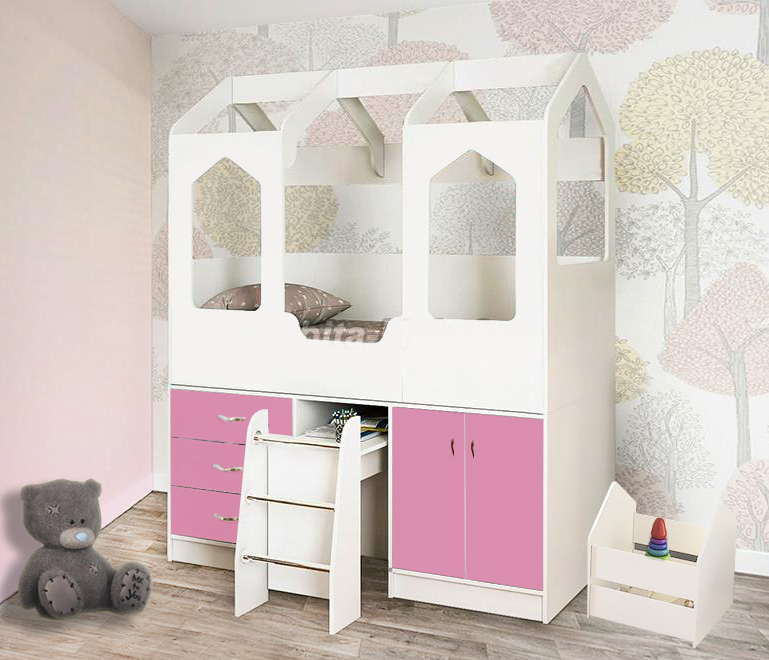 Отзывы о Столплит Кровать чердак Домик-Сказка с выдвижным столом ДС-14 Белое Дерево Розовый