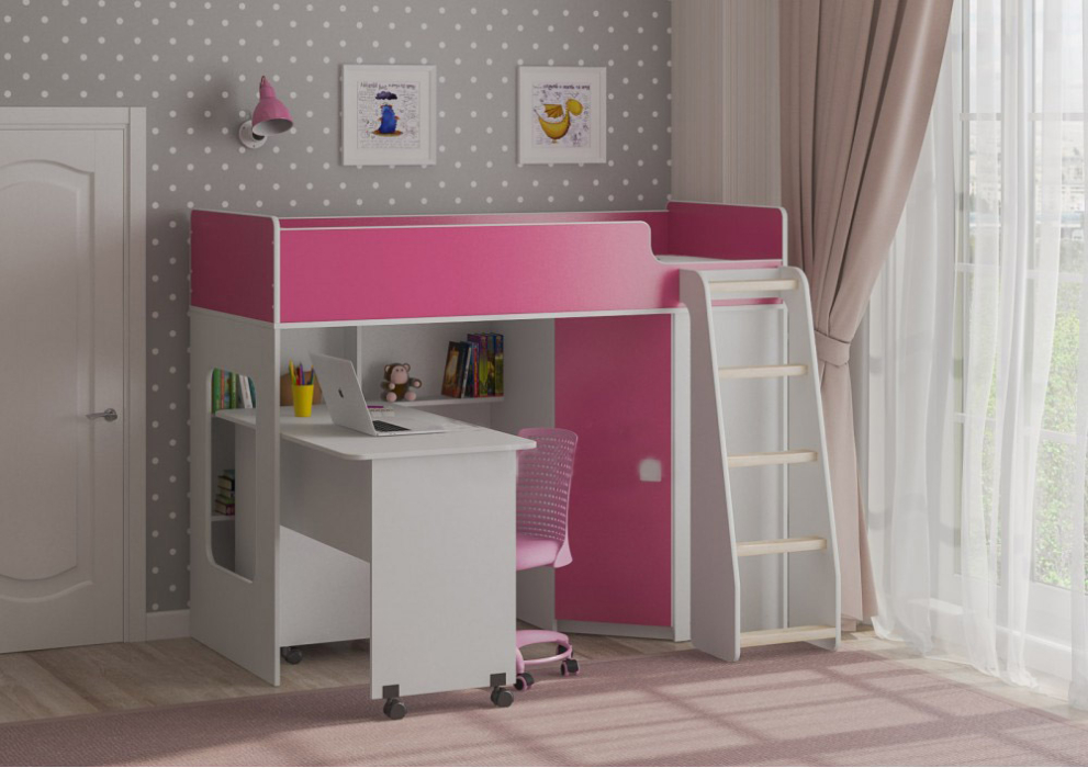 Кровать чердак Легенда 42.2.5 Белое Дерево (Розовый)