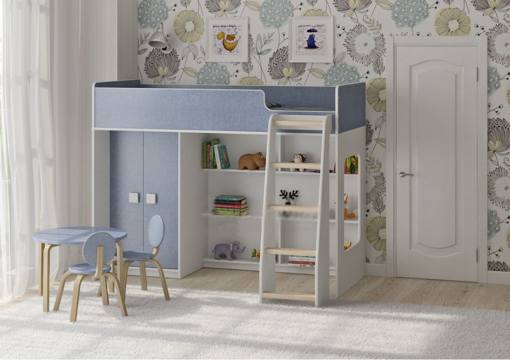 Кровать чердак Легенда 42.1.2 Белое Дерево (Синий)