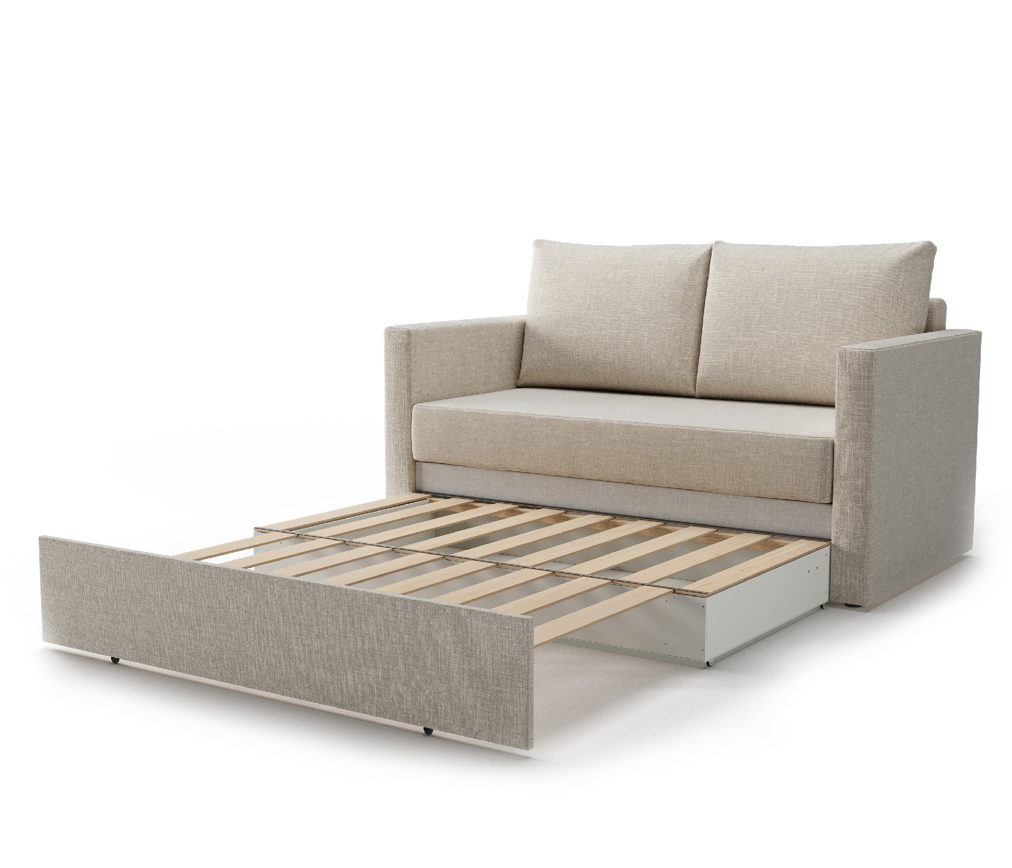 Диван-кровать Альфа отличный выбор для Вашего дома. Благодаря компактным габаритам (в сложенном виде — 1470х810х870 мм) диван-кровать удачно впишется в небольшую гостиную, квартиру-студию, кухню, спальню. Простой и надежный выкатной механизм обеспечивает удобное спальное место с размерами 1260х2000 мм. Спать на нем будет комфортно как ребенку, так и взрослому. Диван оснащен высокоплотным ППУ-матрасом, который в сочетании с латами, обеспечивают ортопедический эффект и здоровый сон. Каркас выполнен из бруса, фанеры и древесных плит. Под подъемной ламельной решеткой расположен вместительный ящик для белья. Обивка выполнена из рогожки — износостойкой ткани с полотняной фактурой. Ткань немаркая, легко поддается чистке. Чехлы на спинных подушках съемные - удобно снять и постирать. Допустимая нагрузка на диван составляет 110 кг на посадочное место.