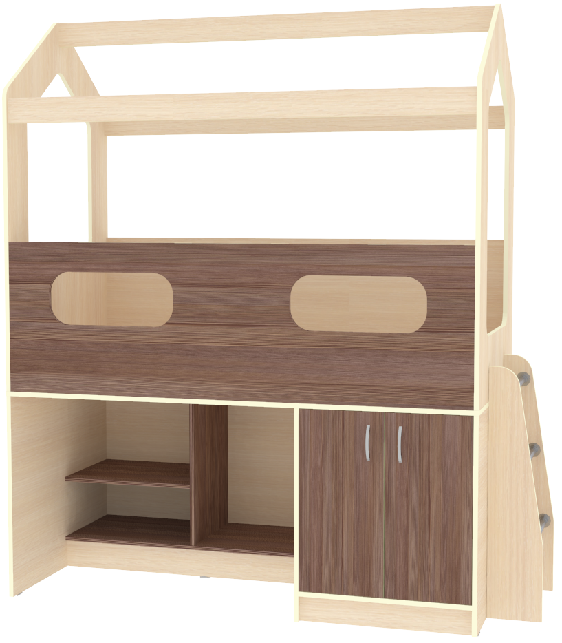 Кровать-чердак ДС-12 — уютный домик с нижним ярусом для игры, разработан для детей от 3-х лет. Передний бортик с окошком имеет высоту 51,5 см. Можно оформить заказ в цвете Белое дерево или с цветным фасадом. На цветных фасадах: цвет кромки - Бежевый. Под спальным местом можно легко организовать игровую зону для ребенка с полочками и шкафчиком, или же удобное и вместительное место для хранения. Компактная и функциональная кровать с личным игровым пространством для детей не занимает много места и станет прекрасным решением для небольших квартир. Матрац приобретается отдельно.