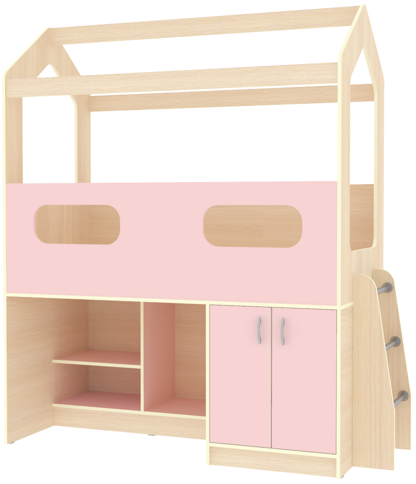 Кровать-чердак ДС-12 — уютный домик с нижним ярусом для игры, разработан для детей от 3-х лет. Передний бортик с окошком имеет высоту 51,5 см. Можно оформить заказ в цвете Белое дерево или с цветным фасадом. На цветных фасадах: цвет кромки - Бежевый. Под спальным местом можно легко организовать игровую зону для ребенка с полочками и шкафчиком, или же удобное и вместительное место для хранения. Компактная и функциональная кровать с личным игровым пространством для детей не занимает много места и станет прекрасным решением для небольших квартир. Матрац приобретается отдельно.