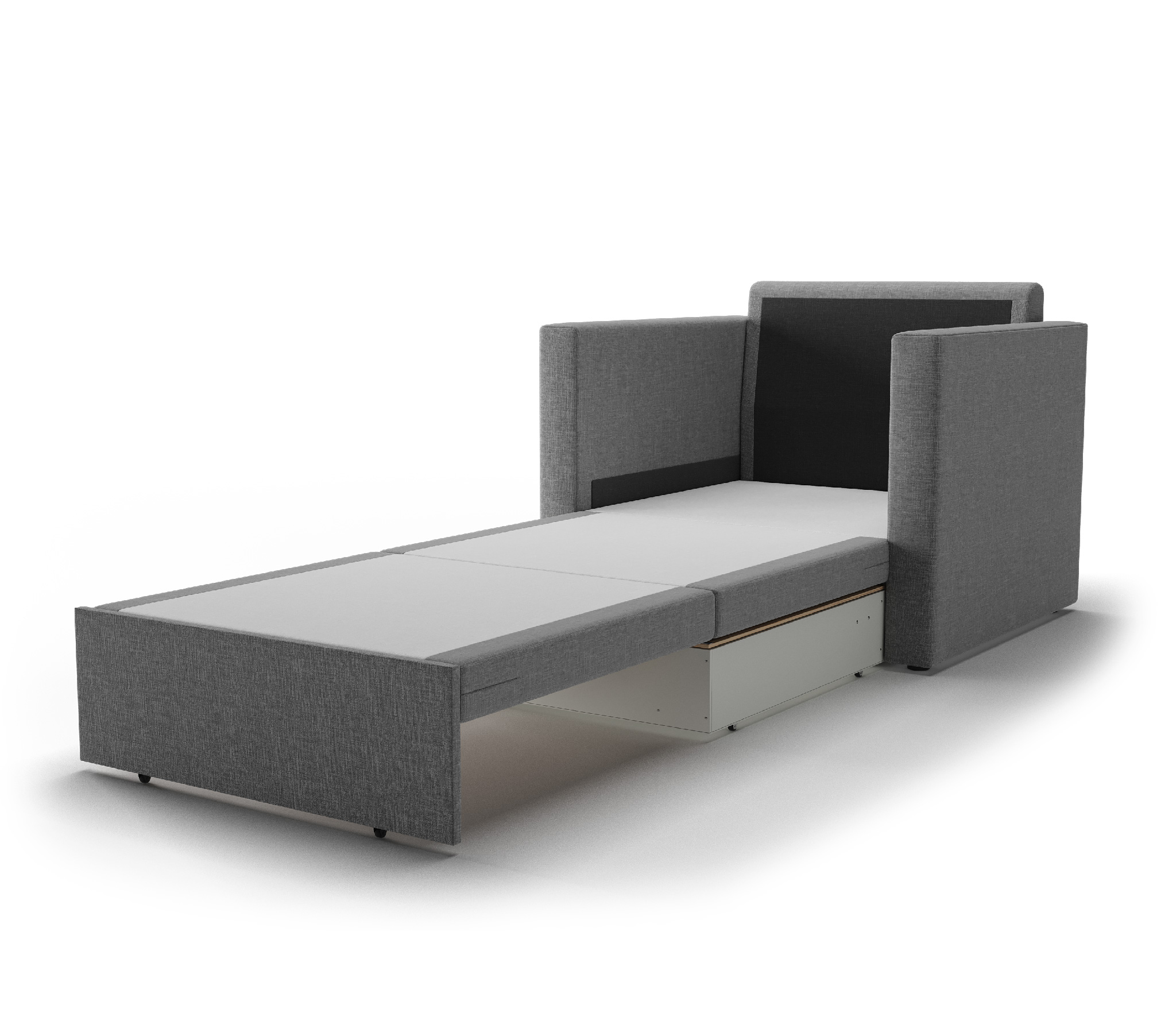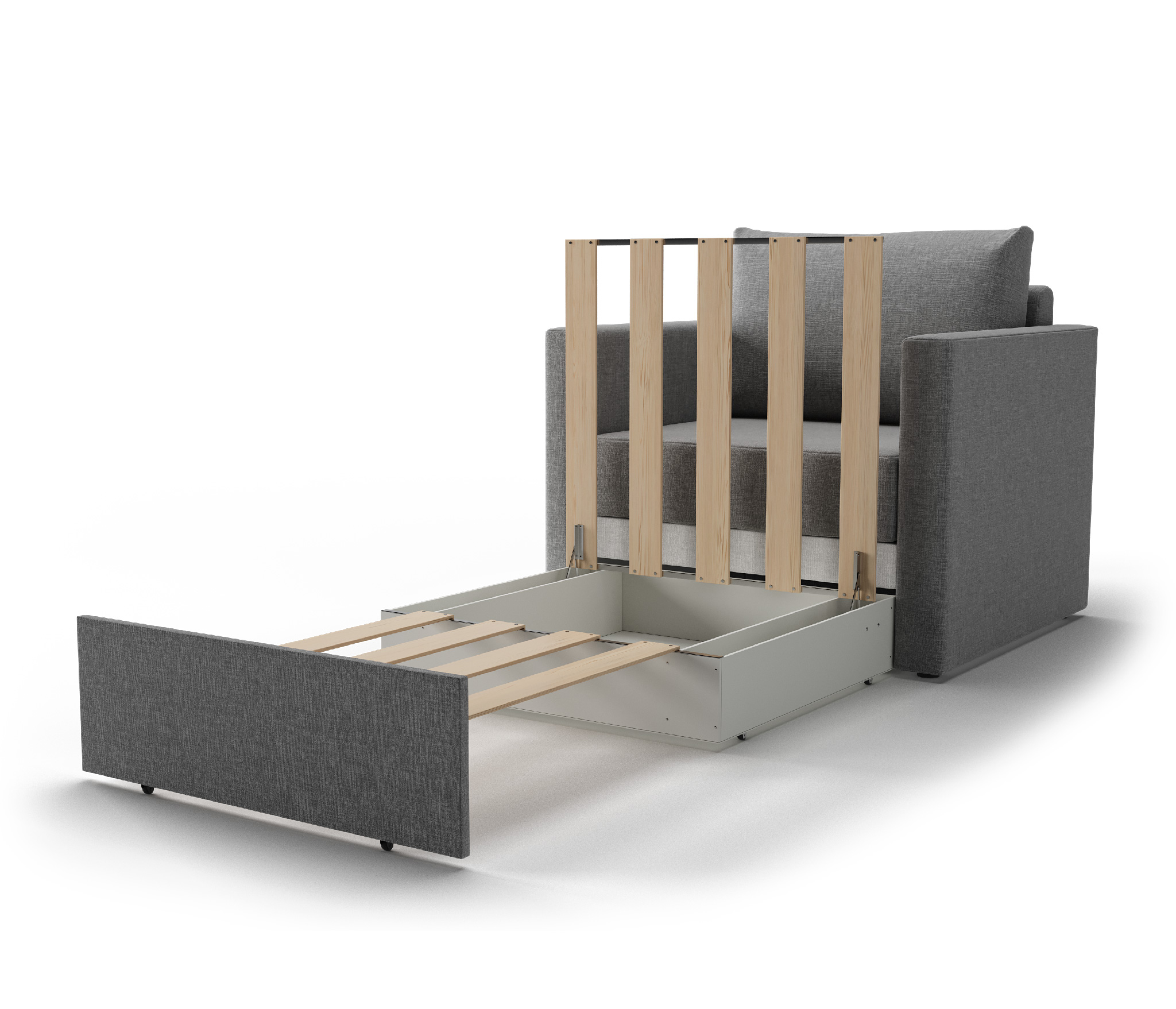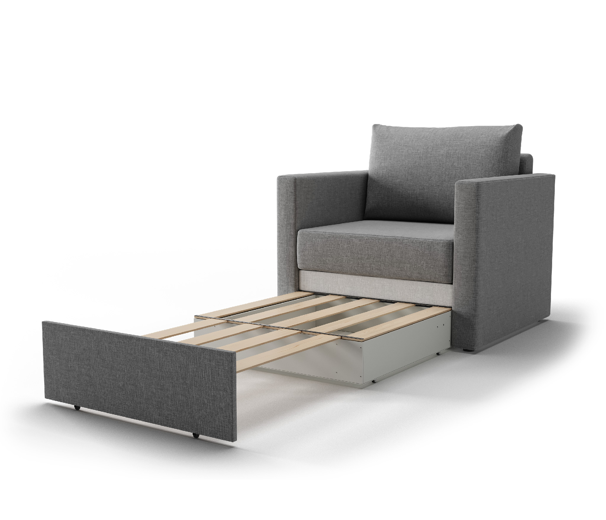 Кресло-кровать Альфа отличный выбор для Вашего дома. Благодаря компактным габаритам диван-кровать удачно впишется в небольшую гостиную, квартиру-студию, кухню, спальню. Простой и надежный выкатной механизм обеспечивает удобное спальное место с размерами 700х2000 мм. Спать на нем будет комфортно как ребенку, так и взрослому. Диван оснащен высокоплотным ППУ-матрасом, который в сочетании с латами, обеспечивают ортопедический эффект и здоровый сон. Каркас выполнен из бруса, фанеры и древесных плит. Под подъемной ламельной решеткой расположен вместительный ящик для белья. Обивка выполнена из рогожки — износостойкой ткани с полотняной фактурой. Ткань немаркая, легко поддается чистке. Чехол на спинной подушке съемный - удобно снять и постирать. Допустимая нагрузка на диван составляет 110 кг на посадочное место.