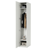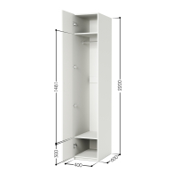 Габариты внешние: ширина 400 мм. глубина 600 мм. высота 2200 мм. Изделие выполнено из высококачественной ЛДСП отечественного производства. Края отделаны кромкой ПВХ 2 мм. Изделие поставляется в разобранном виде. В комплект входит инструкция. Корпус ламинированная ДСП, Задняя стенка ДВП, Тип шкафа линейный (прямой). Гарантийный срок (мес) 18 , Количество распашных дверей 1 Штанга для одежды шт. 1. Наполнение полки и штанга, Вес (кг) 50, Обём (м³) 0.21, Количество упаковок 1, Толщина корпуса 16мм, Количество секций 1, Фасады дверей ЛДСП.