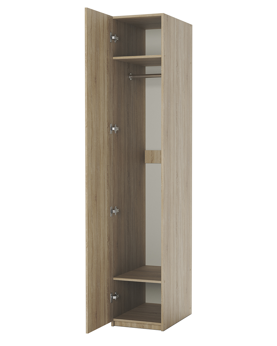 Габариты внешние: ширина 500 мм. глубина 600 мм. высота 2200 мм. Изделие выполнено из высококачественной ЛДСП отечественного производства. Края отделаны кромкой ПВХ 2 мм. Изделие поставляется в разобранном виде. В комплект входит инструкция. Корпус ламинированная ДСП, Задняя стенка ДВП, Тип шкафа линейный (прямой) Гарантийный срок (мес) 18 , Количество распашных дверей 1 Штанга для одежды шт. 1.Наполнение полки и штанга, Вес (кг) 60, Обём (м³) 0.26, Количество упаковок 1, Толщина корпуса 16мм, Количество секций 1, Фасады дверей ЛДСП.