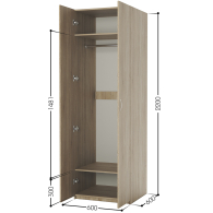 Габариты внешние: ширина 600 мм. глубина 600 мм. высота 2200 мм. Изделие выполнено из высококачественной ЛДСП отечественного производства. Края отделаны кромкой ПВХ 2 мм. Изделие поставляется в разобранном виде. В комплект входит инструкция. Корпус ламинированная ДСП, Задняя стенка ДВП, Тип шкафа линейный (прямой) Гарантийный срок (мес) 18 , Количество распашных дверей 2 Штанга для одежды шт. 1.Наполнение полки и штанга, Вес (кг) 65, Обём (м³) 0.3, Количество упаковок 2, Толщина корпуса 16мм, Количество секций 1, Фасады дверей ЛДСП.
