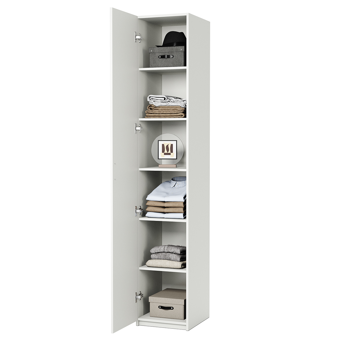 Габариты внешние: ширина 500 мм. глубина 450 мм. высота 2200 мм. Изделие выполнено из высококачественной ЛДСП отечественного производства. Края отделаны кромкой ПВХ 2 мм. Изделие поставляется в разобранном виде. В комплект входит инструкция. Корпус ламинированная ДСП, Задняя стенка ДВП, Тип шкафа линейный (прямой) Гарантийный срок (мес) 18 , Количество распашных дверей 1. Наполнение полки, Вес (кг) 65, Обём (м³) 0.25, Количество упаковок 1, Толщина корпуса 16мм, Количество секций 1, Фасады дверей ЛДСП.