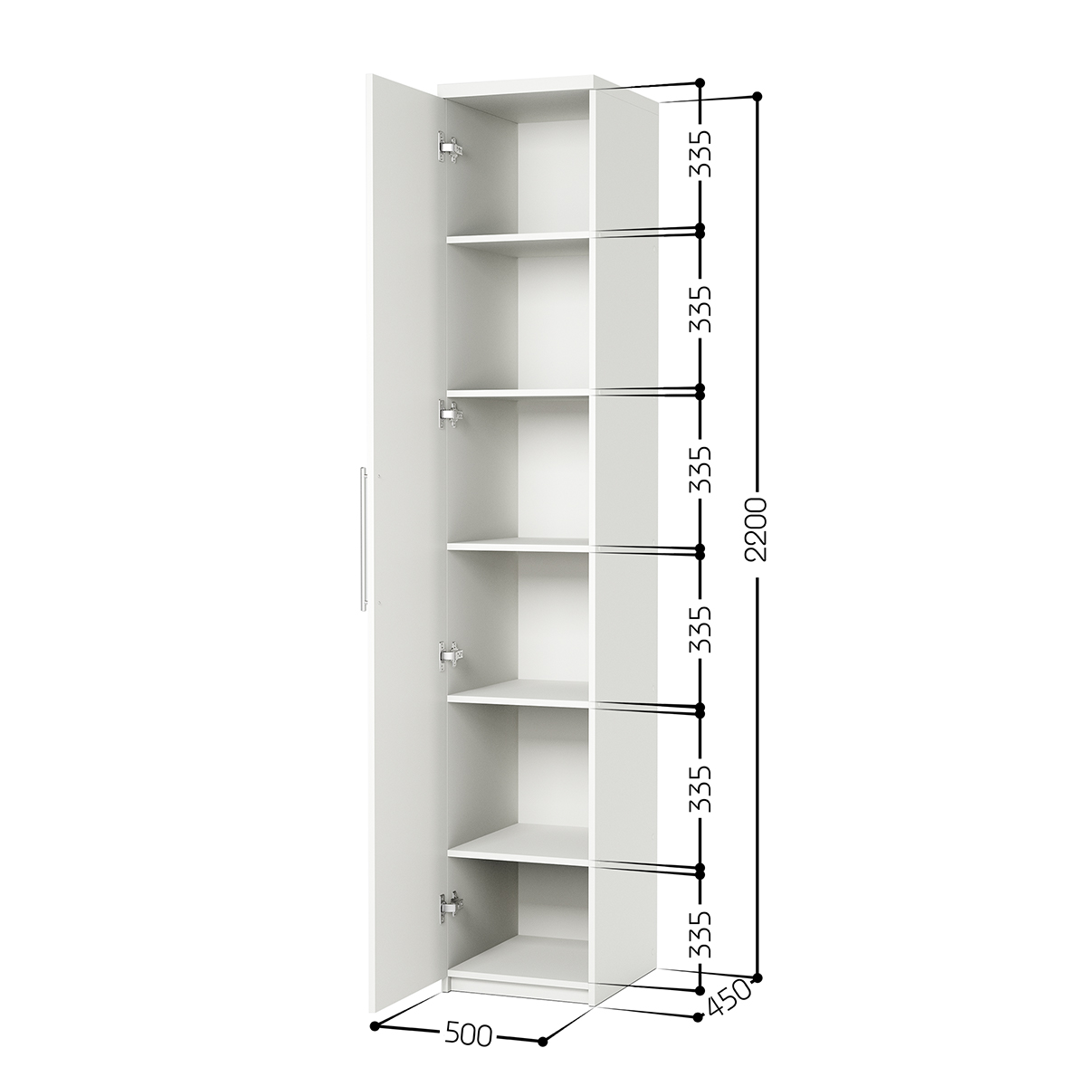 Габариты внешние: ширина 500 мм. глубина 450 мм. высота 2200 мм. Гарантия: 18 месяцев, Штанга для вешалок: нет, Страна производства: Россия, Материал корпуса: ЛДСП, Количество дверей: 1,Зеркало в дверце: нет, Тип шкафа: для белья, Требуется сборка: да. Изделие выполнено из высококачественной ЛДСП отечественного производства. Края отделаны кромкой ПВХ 2 мм. Изделие поставляется в разобранном виде. В комплект входит инструкция. Корпус ламинированная ДСП, Задняя стенка ДВП, Тип шкафа линейный (прямой).