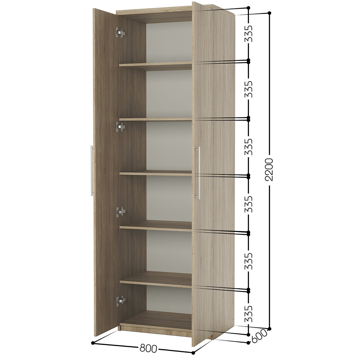 Габариты внешние: ширина 800 мм. глубина 600 мм. высота 2200 мм. Гарантия: 18 месяцев, Штанга для вешалок: нет, Страна производства: Россия, Материал корпуса: ЛДСП, Количество дверей: 2,Зеркало в дверце: нет, Тип шкафа: для белья, Требуется сборка: да. Изделие выполнено из высококачественной ЛДСП отечественного производства. Края отделаны кромкой ПВХ 2 мм. Изделие поставляется в разобранном виде. В комплект входит инструкция. Корпус ламинированная ДСП, Задняя стенка ДВП, Тип шкафа линейный (прямой).