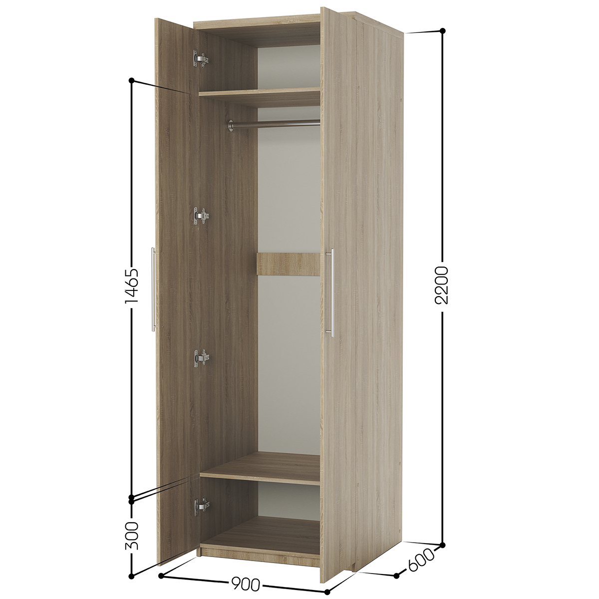 Габариты внешние: ширина 900 мм. глубина 600 мм. высота 2200 мм. Гарантия: 18 месяцев, Штанга для вешалок: да, Страна производства: Россия, Материал корпуса: ЛДСП, Количество дверей: 2, Зеркало в дверце: нет, Тип шкафа: для одежды, Требуется сборка: да. Изделие выполнено из высококачественной ЛДСП отечественного производства. Края отделаны кромкой ПВХ 2 мм. Изделие поставляется в разобранном виде. В комплект входит инструкция. Корпус ламинированная ДСП, Задняя стенка ДВП, Тип шкафа линейный (прямой).