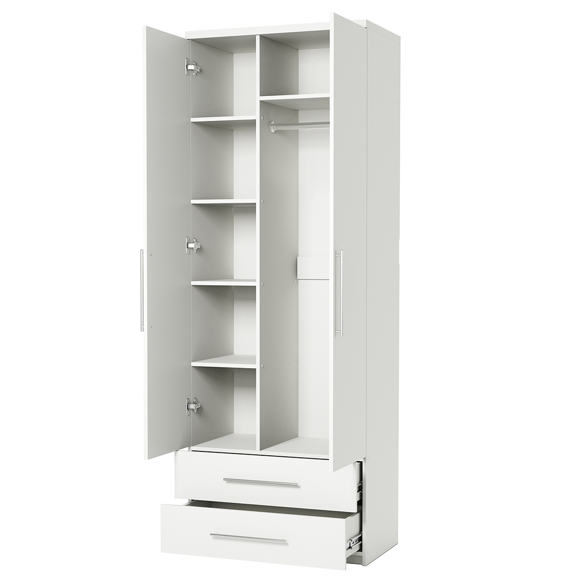 Габариты внешние: ширина 800 мм. глубина 600 мм. высота 2200 мм., Гарантия: 18 месяцев, Штанга для вешалок: да, Страна производства: Россия, Материал корпуса: ЛДСП, Количество дверей: 2,Зеркало в дверце: нет, Тип шкафа: для одежды, Требуется сборка: да Наполнение шкафа комбинированный полки и штанга. Изделие выполнено из высококачественной ЛДСП отечественного производства. Края отделаны кромкой ПВХ 2 мм. Изделие поставляется в разобранном виде. В комплект входит инструкция. Корпус ламинированная ДСП, Задняя стенка ДВП, Тип шкафа линейный (прямой).