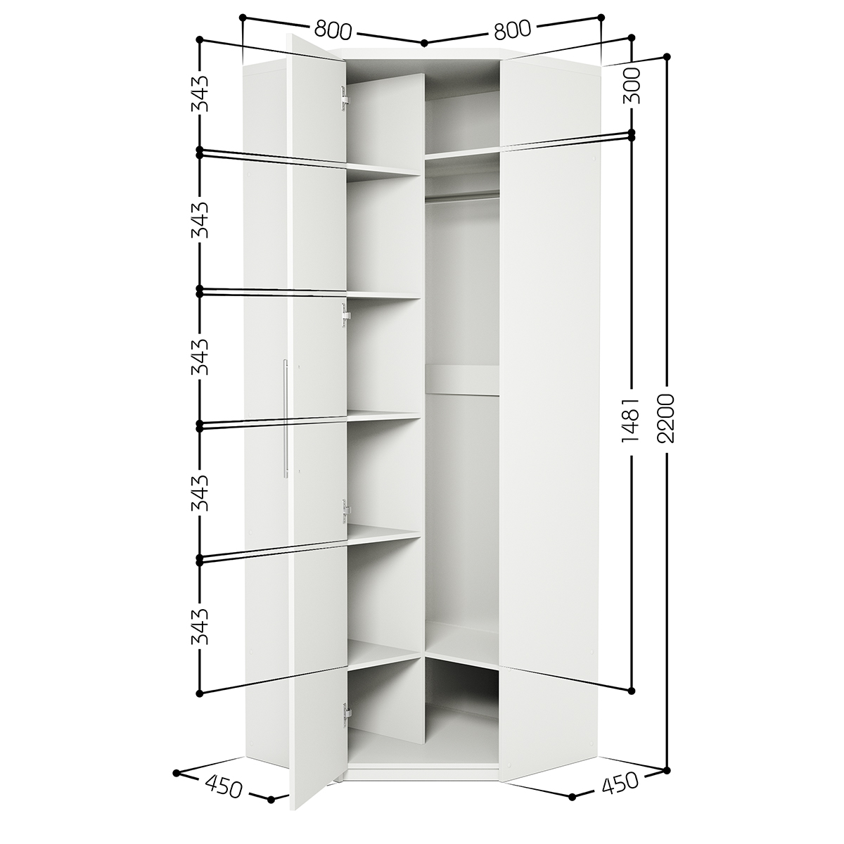 Габариты внешние: по боковинам имеет глубину: 450x450 мм, общие габариты основания шкафа: 800x800 мм. высота 2200 мм., Гарантия: 18 месяцев, Штанга для вешалок: да, Страна производства: Россия, Материал корпуса: ЛДСП, Количество дверей: 1, Материал фасада: ЛДСП, Зеркало в дверце: нет, Тип шкафа: для одежды, Требуется сборка: да . Наполнение шкафа комбинированный полки и штанга. Изделие выполнено из высококачественной ЛДСП отечественного производства. Края отделаны кромкой ПВХ 2 мм. Изделие поставляется в разобранном виде. В комплект входит инструкция. Корпус ламинированная ДСП, Задняя стенка ДВП.