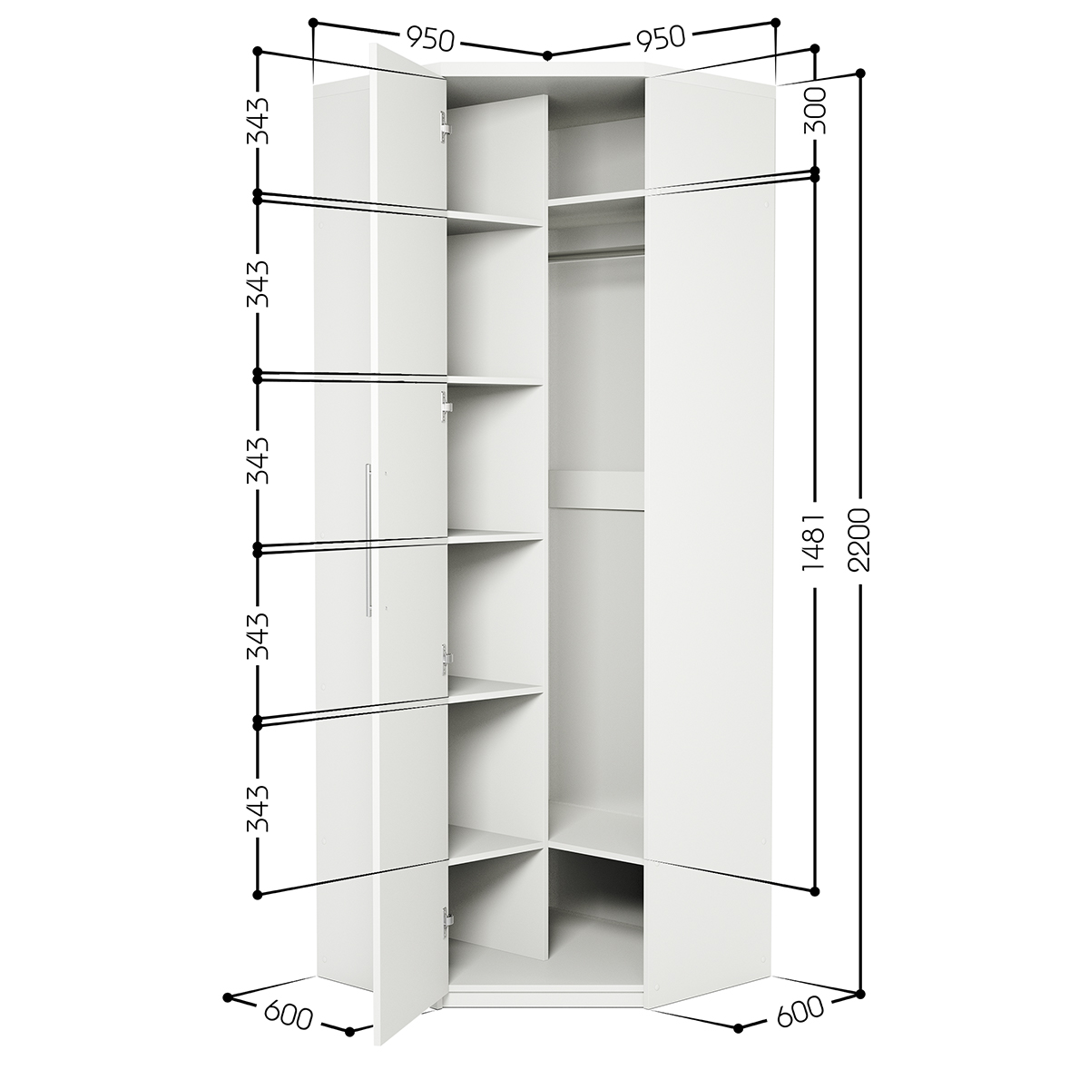 Габариты внешние: по боковинам имеет глубину: 600x600 мм, общие габариты основания шкафа: 950x950 мм. высота 2200 мм., Гарантия: 18 месяцев, Штанга для вешалок: да, Страна производства: Россия, Материал корпуса: ЛДСП, Количество дверей: 1, Материал фасада: ЛДСП, Зеркало в дверце: нет, Тип шкафа: для одежды, Требуется сборка: да . Наполнение шкафа комбинированный полки и штанга. Изделие выполнено из высококачественной ЛДСП отечественного производства. Края отделаны кромкой ПВХ 2 мм. Изделие поставляется в разобранном виде. В комплект входит инструкция. Корпус ламинированная ДСП, Задняя стенка ДВП.