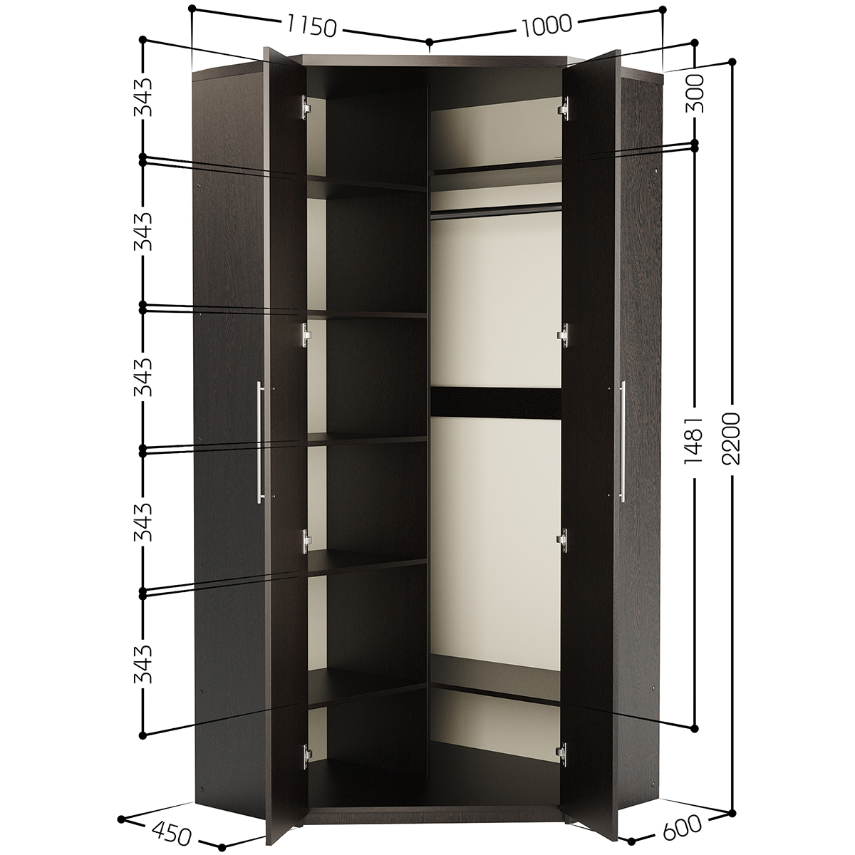 Шкаф угловой двухдверный Мелодия МУ-22 115х100 (Венге)