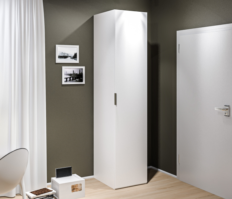 Модульность элементов позволяет самостоятельно создать шкаф с нужными вам параметрами: расположение и количество полок, ящиков, штанг и вариантов дверей зависит только от вашей фантазии.