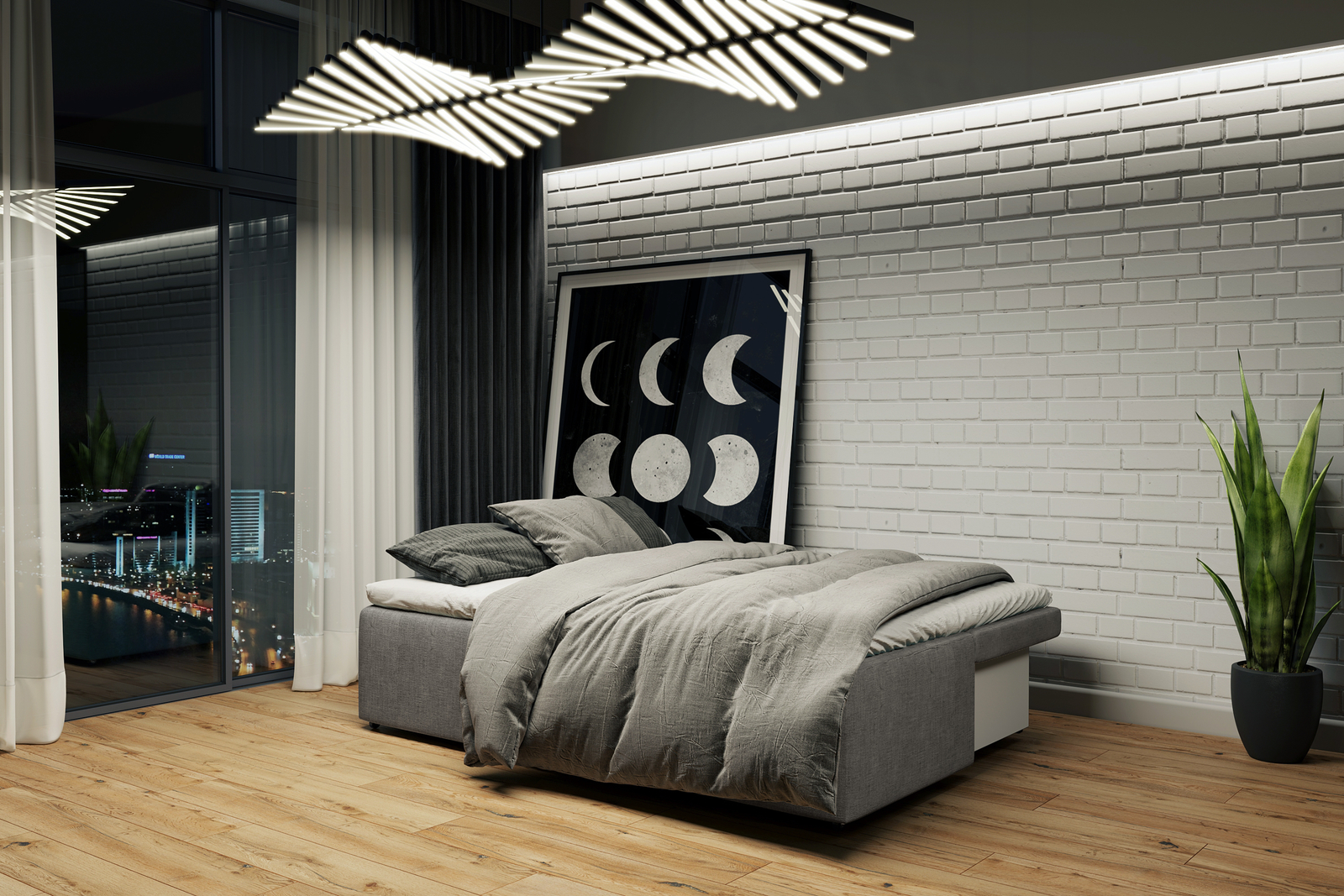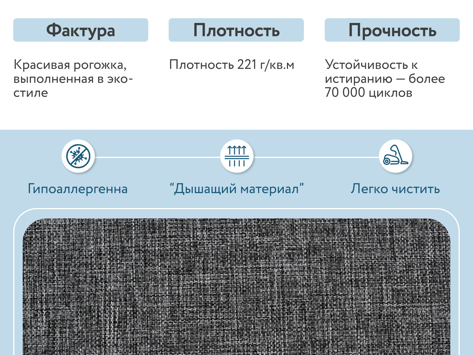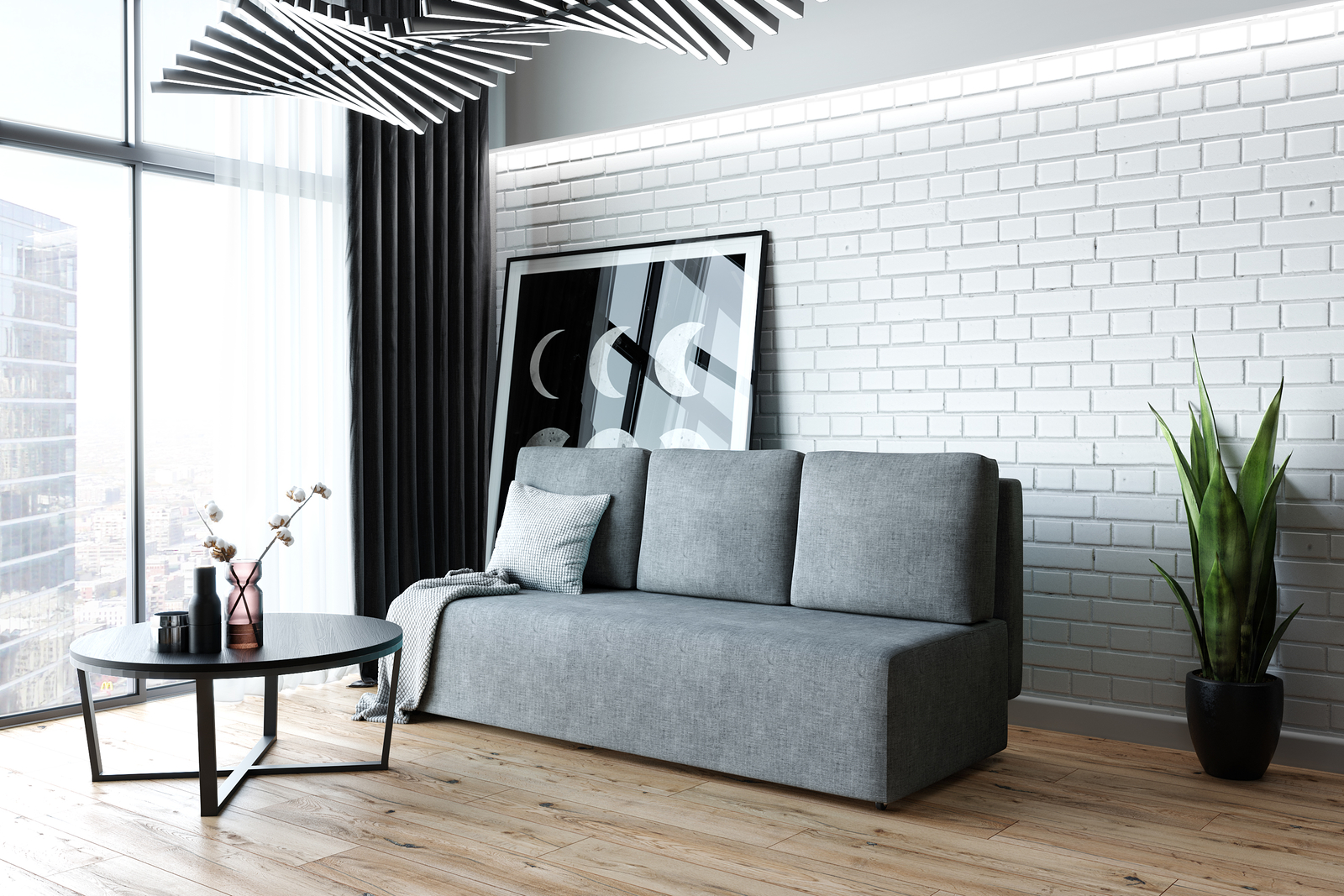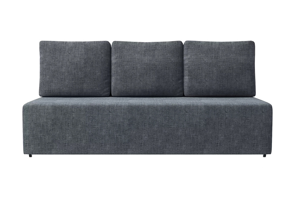 Представленная модель прямого дивана отличается своим минималистичным дизайном и оригинальной расцветкой. У него полностью отсутствуют подлокотники и не видно ножек. Дополняют картину три мягкие подушки, которыми прикрыта ровная спинка. Обивка из рогожки придает модели современный внешний вид. Диван предназначен для посадки трех гостей и ночного отдыха одного-двух человек. Механизм трансформации "Еврокнижка" преобразует его в полутораспальную кровать с удобным и в меру мягким основанием. Дополнительное преимущество модели придает наличие бельевого ящика.