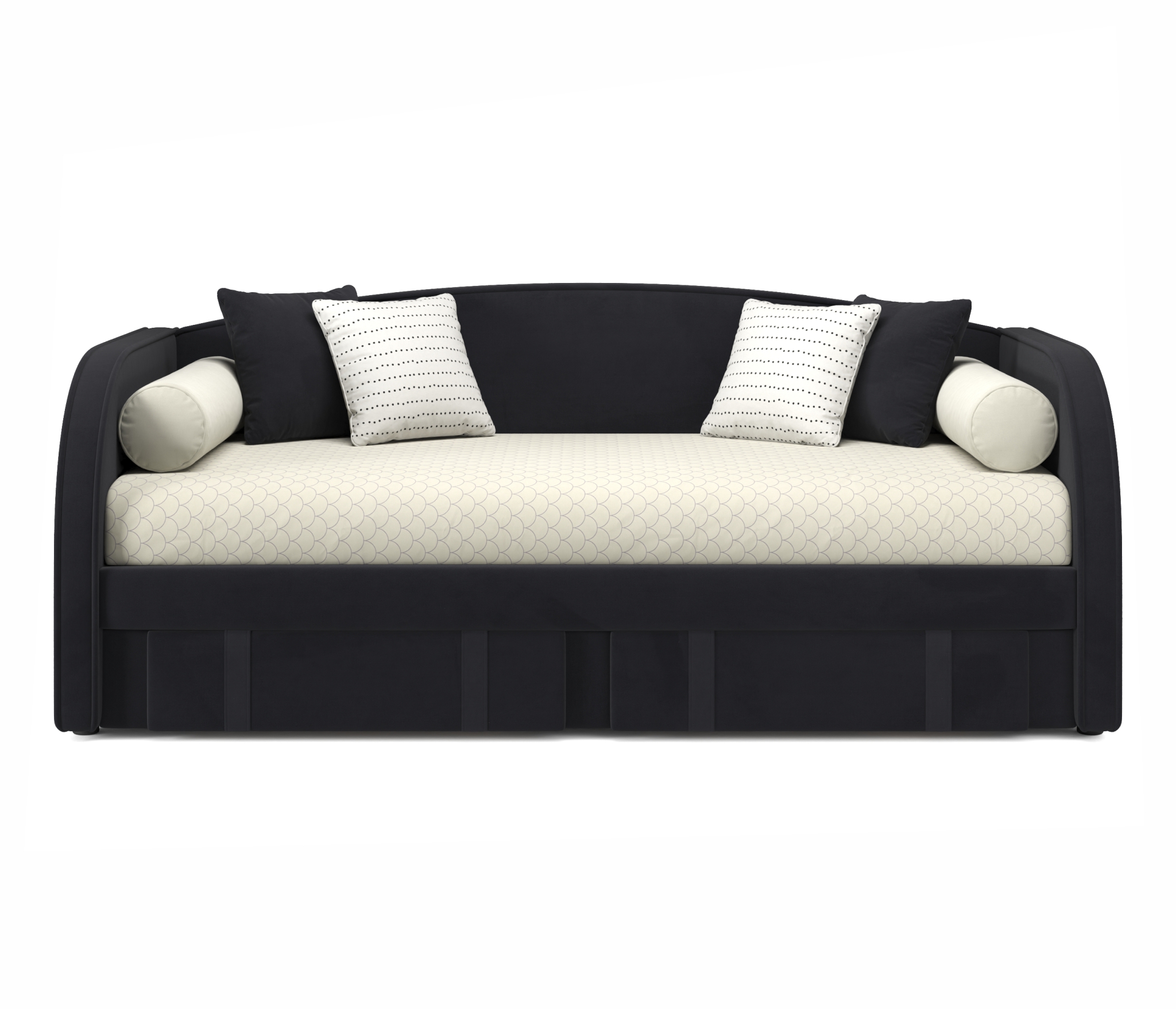 Кровать имеет усиленное металлического основание с амортизирующими ортопедическими ламелями. Универсальность модели позволят ее размещать в спальне, детской или гостиной, как дополнительное спальное место для гостей.
