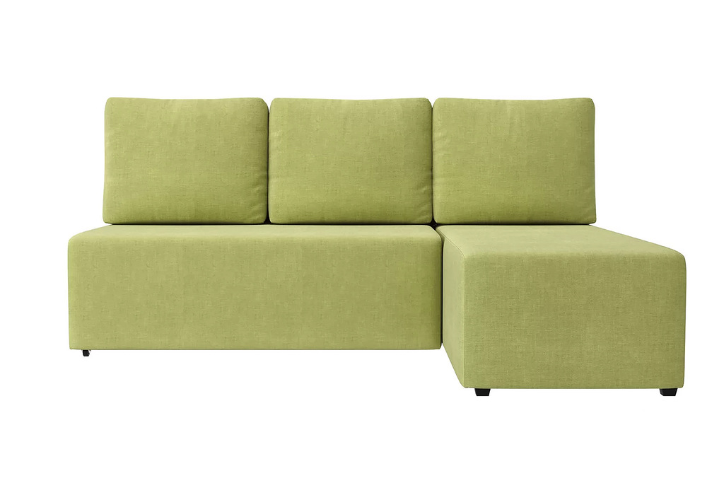 Компактный диван с универсальным углом гармонично впишется в любой современный или сдержанный классический интерьер. Эта модель представлена в практичной и износостойкой обивке из рогожки. Особенностью дивана является отсутствие подлокотников, что значительно увеличивает площадь посадочных мест, которых в данной модели предусмотрено три. Легкий в использовании механизм трансформации «Еврокнижка» превращает этот диван в полноценную полутороспальную кровать, в основе которой начинка из синтепона и ППУ. Для хранения спальных принадлежностей или других вещей можно использовать объемный бельевой короб.
