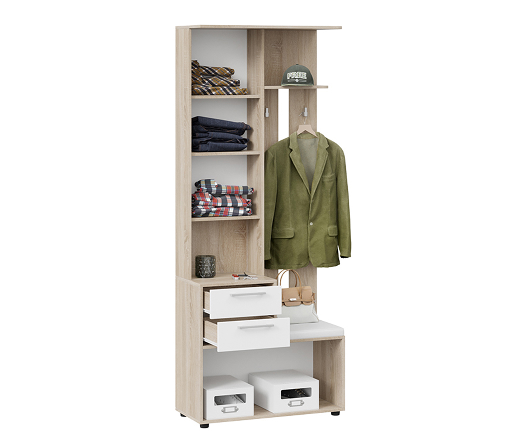 Наполнение - полка ЛДСП, штанга выдвижная, ящики.