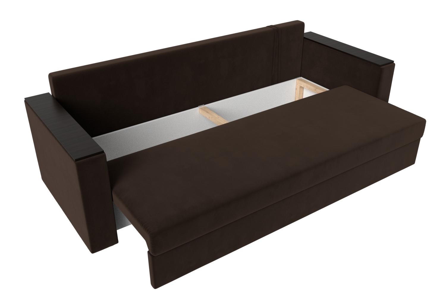 : диван с подобным механизмом занимает совсем мало места, может стоять как у стены, так и в середине комнаты