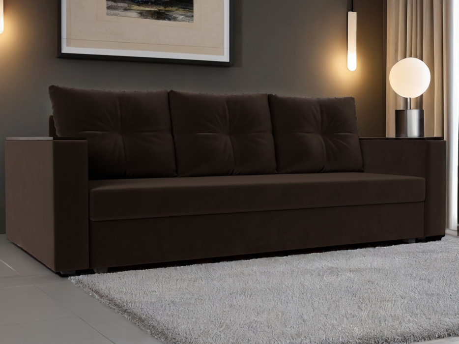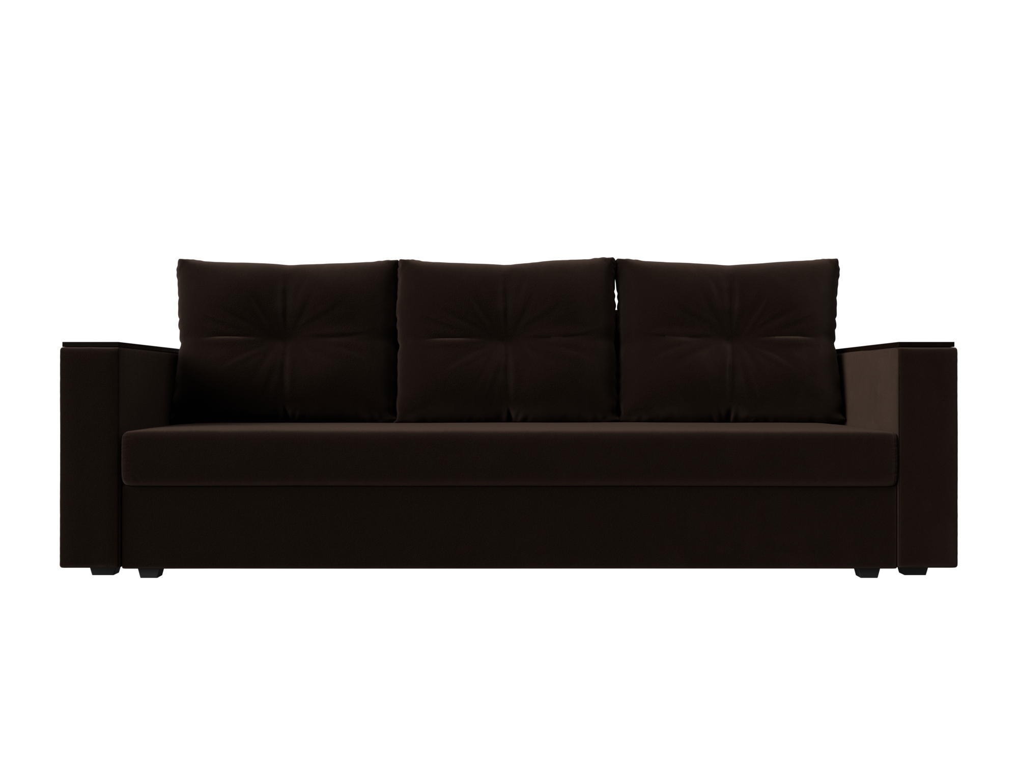 Прямой диван-кровать «Атланта» без стола — современная и функциональная модель станет уютным пространством для досуга. Три большие мягкие приспинные подушки обеспечат комфорт и удобство. Подлокотники с накладками могут выполнять функцию столика, на который всегда можно положить телефон и поставить чашечку чая. Механизм раскладки «еврокнижка» поможет превратить прямой диван в удобную кровать за считанные секунды. Нужно потянуть за нижнюю часть сиденья и опустить спинку в образовавшуюся нишу. Изделие дополнительно оборудовано вместительным ящиком для постельных принадлежностей. Крепкие пластиковые опоры отвечают за устойчивость дивана. За счет своей компактности он отлично впишется в обстановку детской комнаты или небольшой квартиры-студии.
