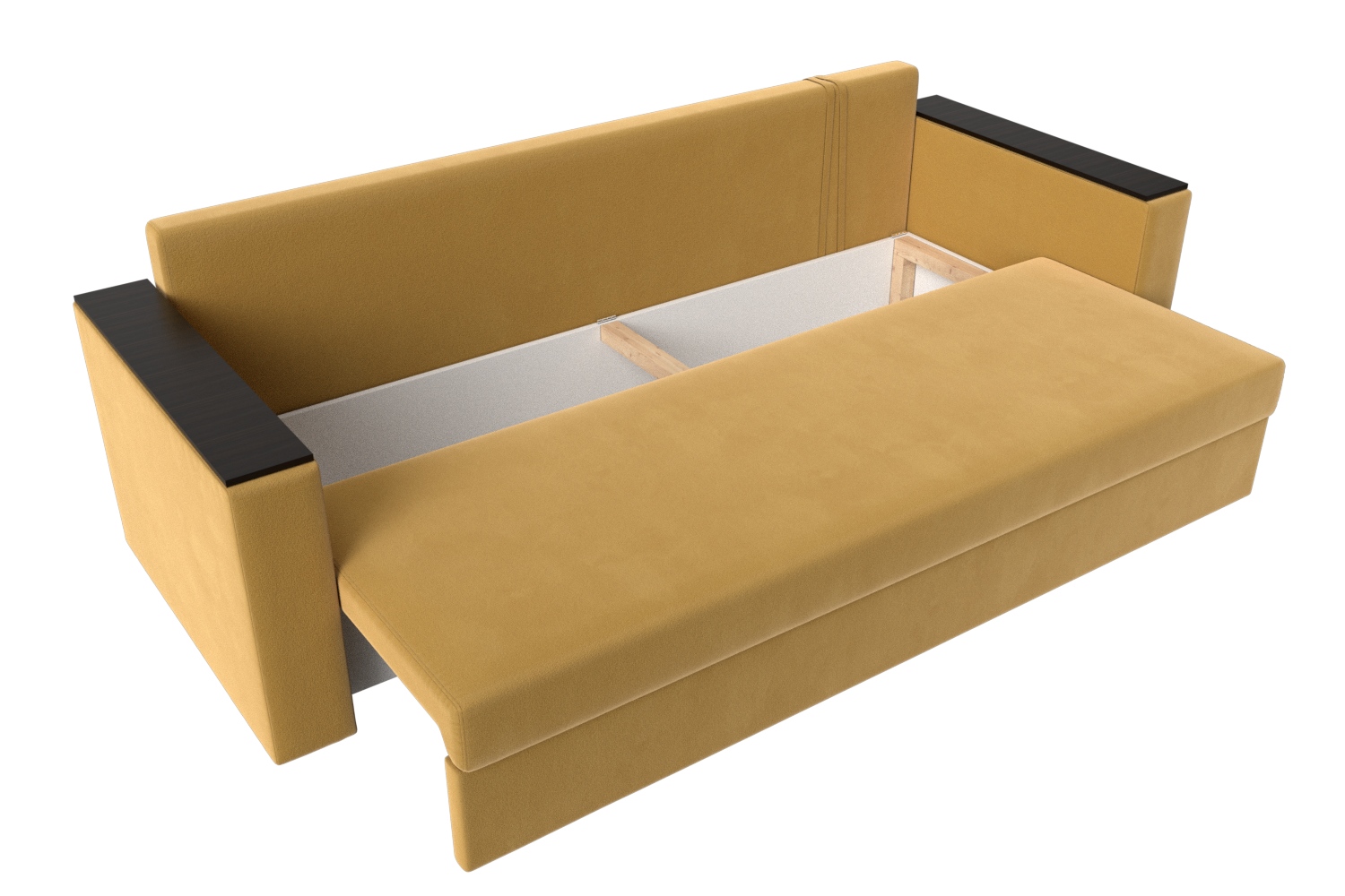 : диван с подобным механизмом занимает совсем мало места, может стоять как у стены, так и в середине комнаты