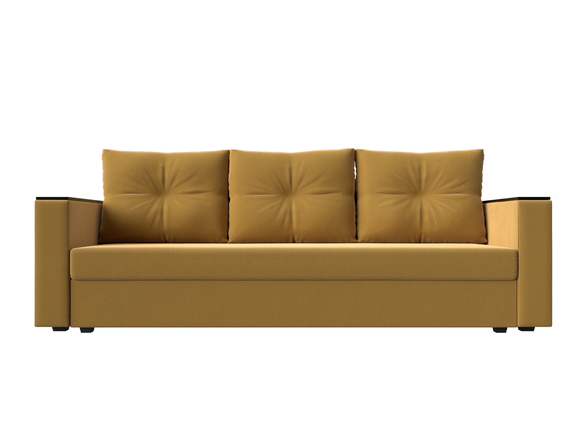 Прямой диван-кровать «Атланта» без стола — современная и функциональная модель станет уютным пространством для досуга. Три большие мягкие приспинные подушки обеспечат комфорт и удобство. Подлокотники с накладками могут выполнять функцию столика, на который всегда можно положить телефон и поставить чашечку чая. Механизм раскладки «еврокнижка» поможет превратить прямой диван в удобную кровать за считанные секунды. Нужно потянуть за нижнюю часть сиденья и опустить спинку в образовавшуюся нишу. Изделие дополнительно оборудовано вместительным ящиком для постельных принадлежностей. Крепкие пластиковые опоры отвечают за устойчивость дивана. За счет своей компактности он отлично впишется в обстановку детской комнаты или небольшой квартиры-студии.
