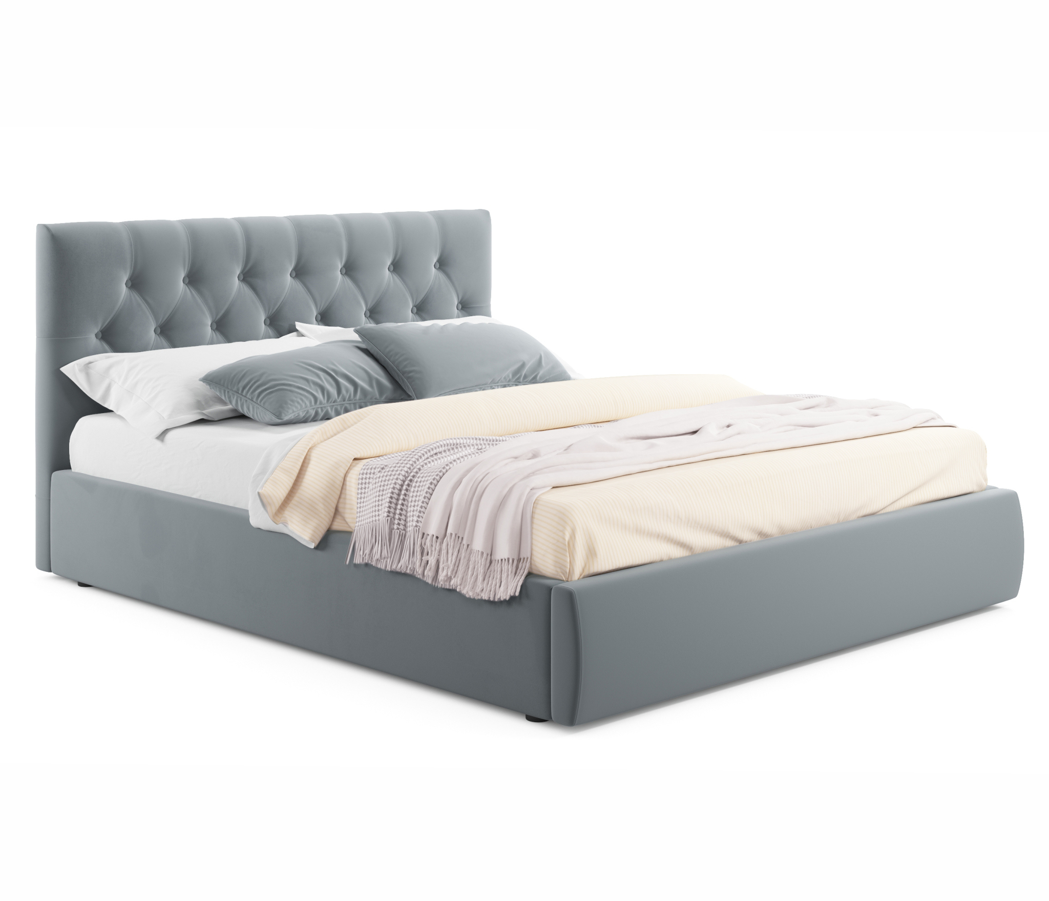 Яркий акцент 2-спальной подъемной мягкой кровати из ткани Verona сделан на мягкое высокую рельефную спинку (мягкий подголовник) в стиле «Chester Laurence» с классической «каретной стяжкой», изготовленную вручную мастерами с 20-летним стажем.