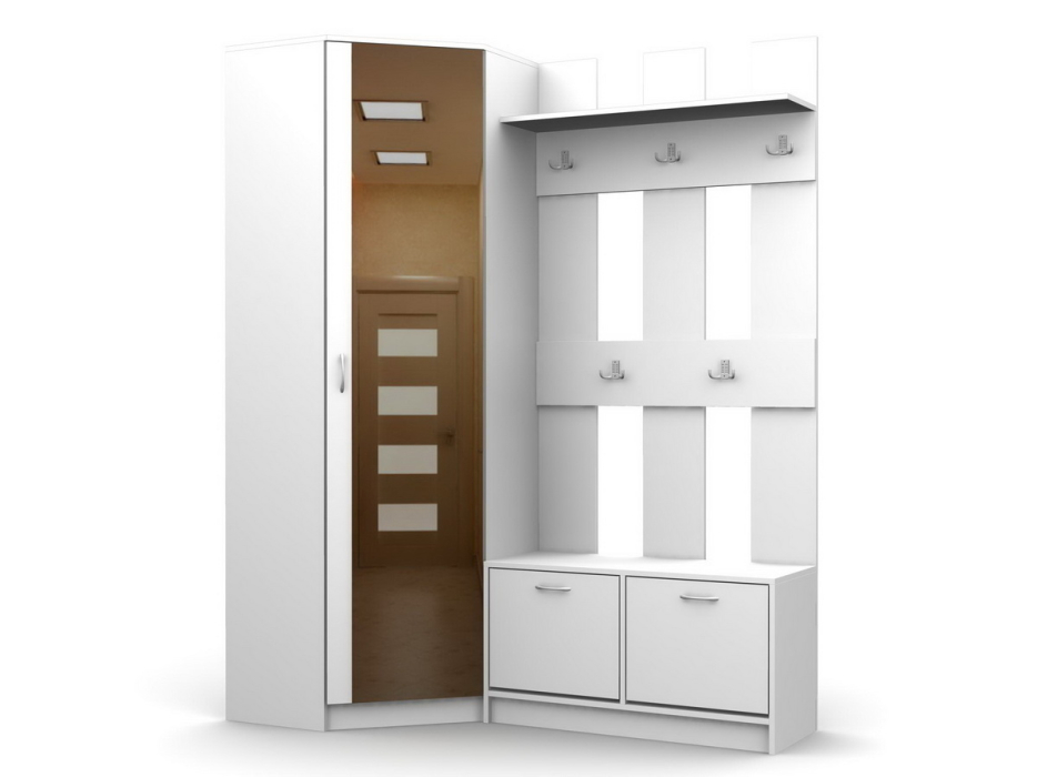 Комплектация: шкаф угловой платье (ш/в/г: 670*670/2000/350), секция с крючками (ш/в/г: 884/2000/350).