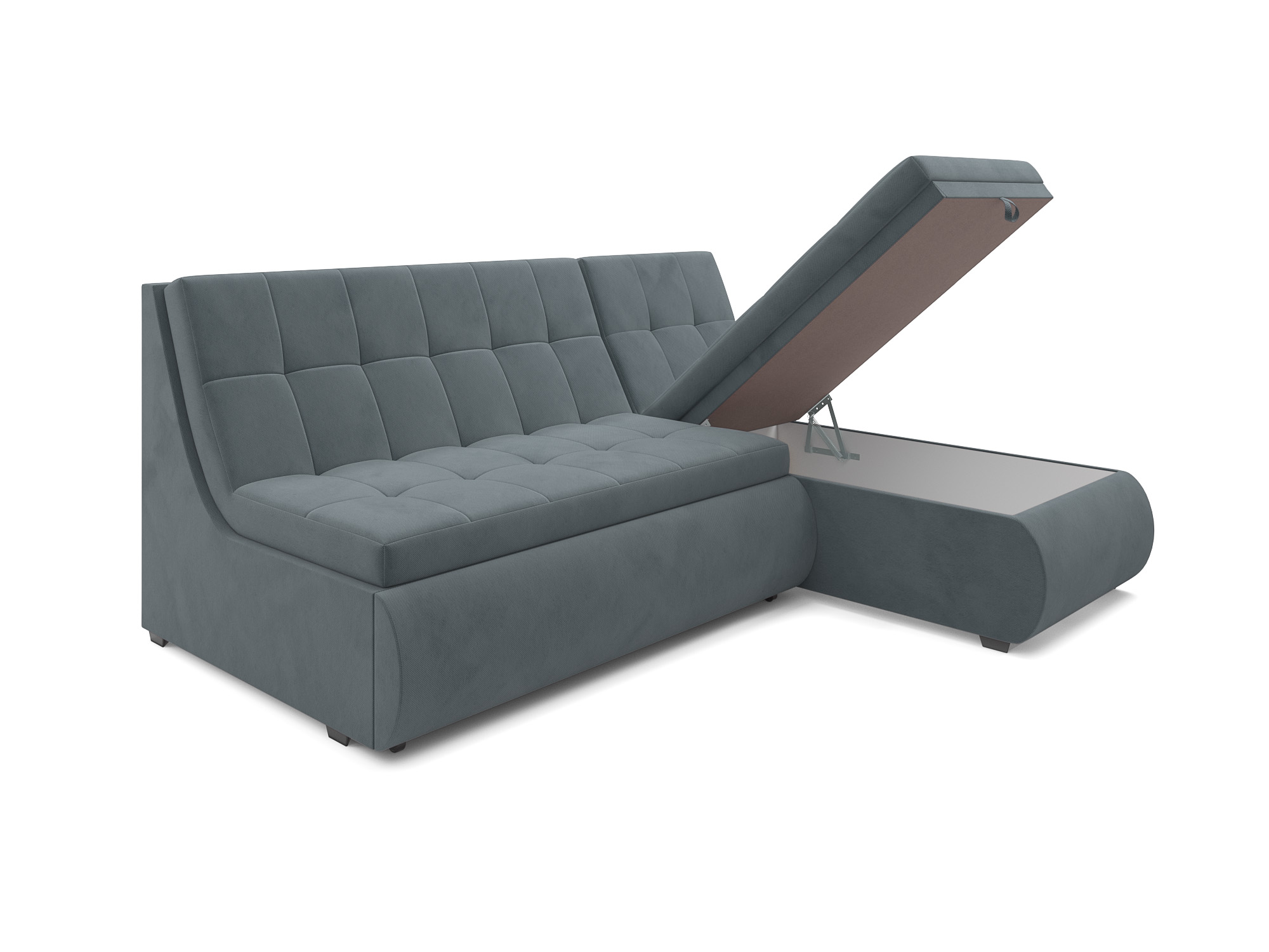 Удобство использования дивана «Дубай» дополняется ящиком для хранения, который расположен внутри угловой части. В него можно положить небольшие вещи или постельные принадлежности, сохраняя порядок и экономя пространство.
